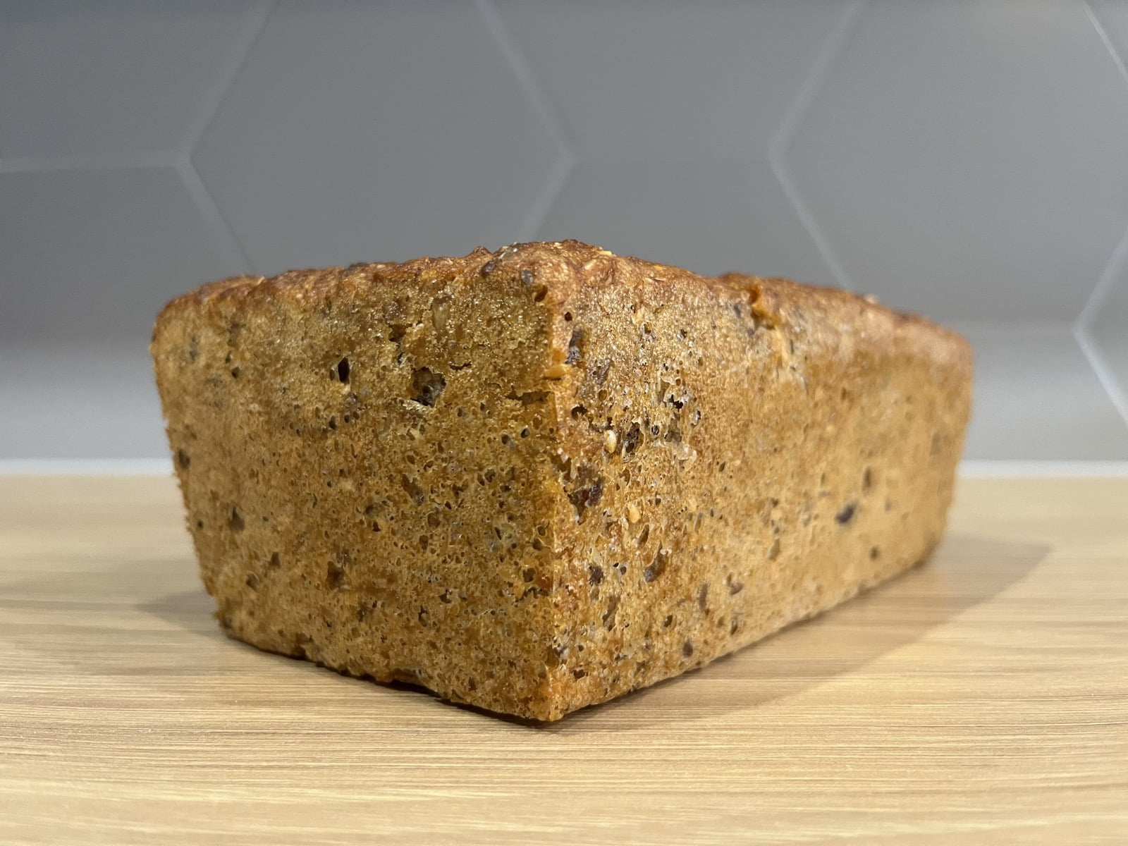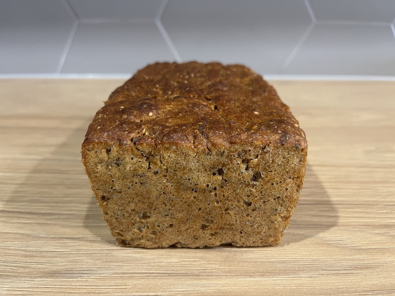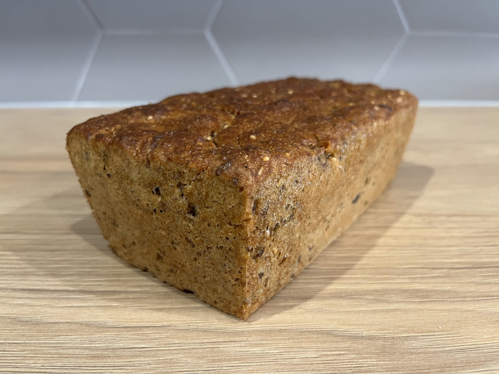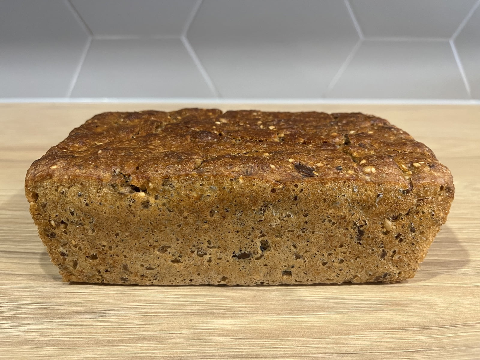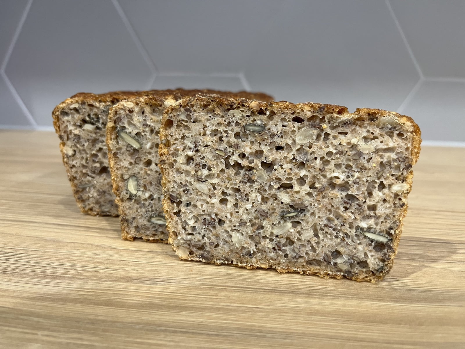 Chleb z ziarnami w środku (słonecznik, pestki dyni, siemię lniane, sezam). Zdrowy, pyszny i bardzo sycący. Polecam dla miłośników ciemnego, lekko kwaśnego pieczywa.